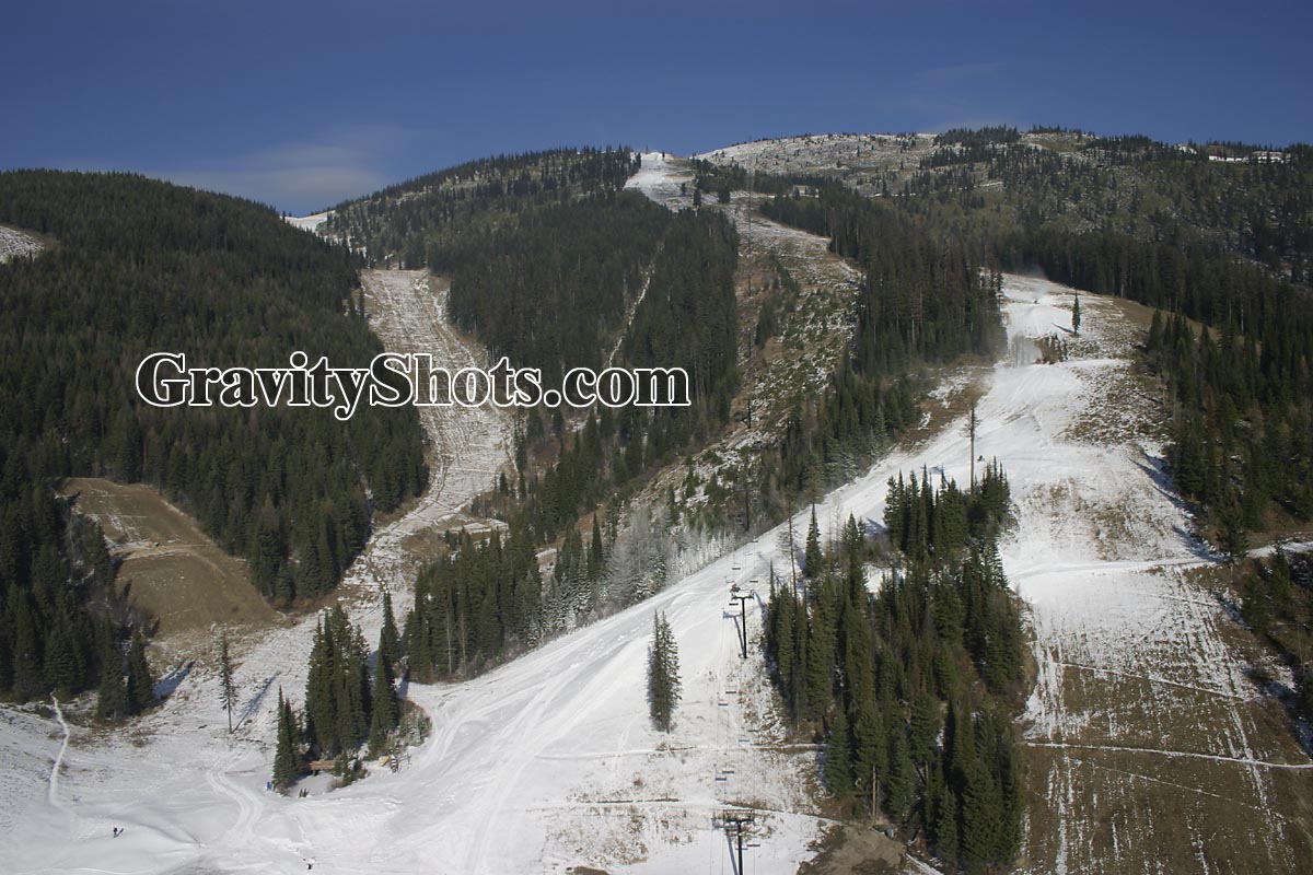 White snowmaking stripe up Toni Matt Big Mountain Fall Aerial