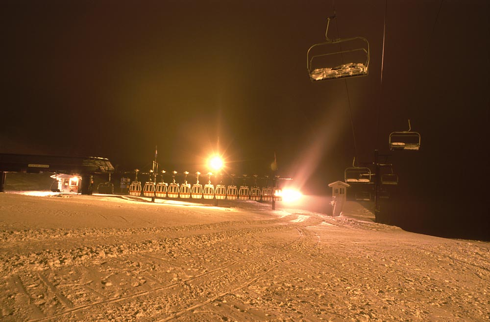 Groomer making the loop Big Mountain Winter Landscape