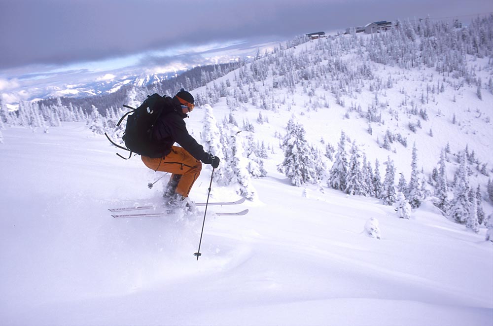 Pete Thomas coming down from the Radio Towers Big Mountain Winter Telemark