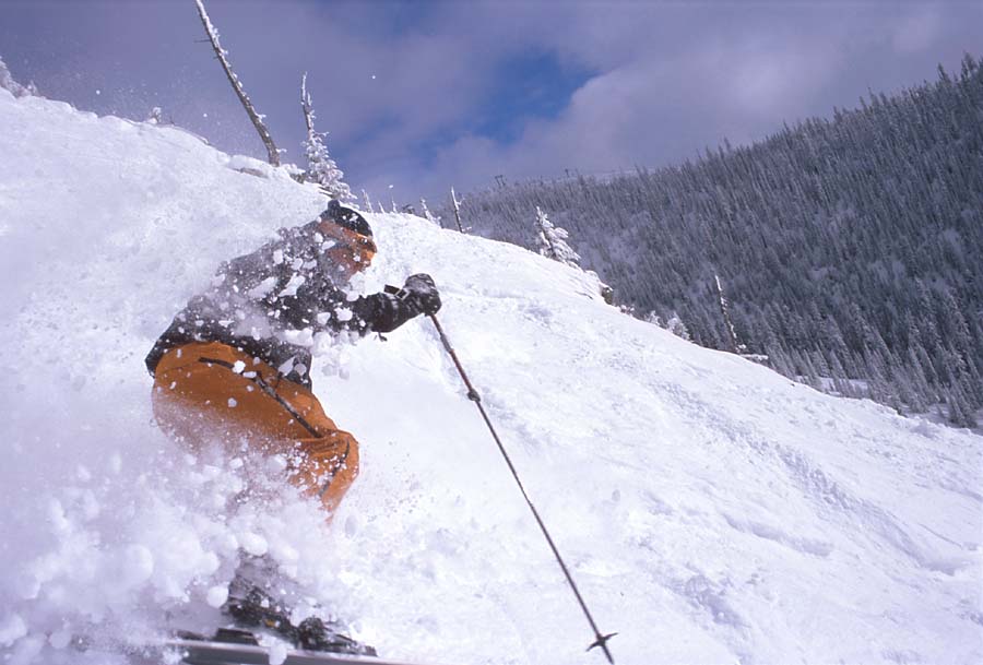 Pete Thomas coming down from the Radio Towers Big Mountain Winter Telemark