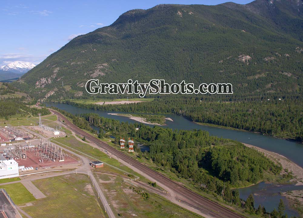 Flathead River exiting Bad Rock canyon Columbia Falls Summer Aerial