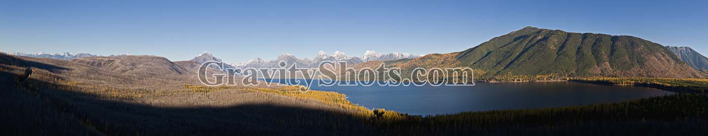 Train coming around the corner. Whitefish Lake, MT Fall Aerial
