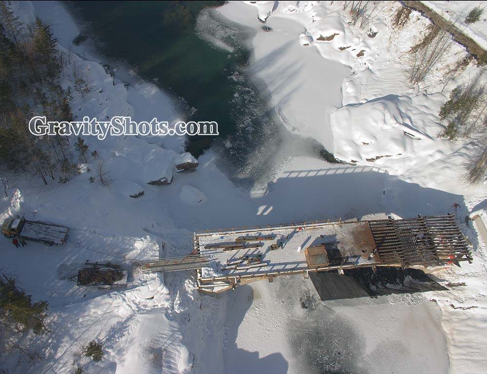 Bridge repair on old entrance to Glacier Park Glacier Park Winter Aerial