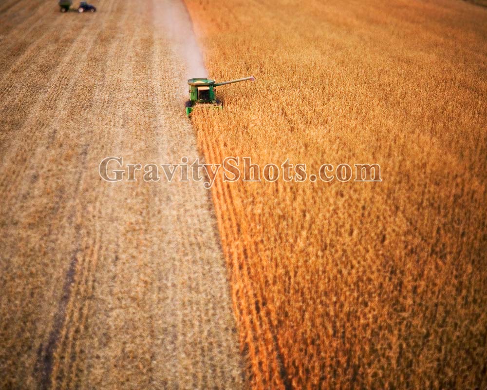 Toy Combine Corn Harvest Grandin, ND Fall Aerial
