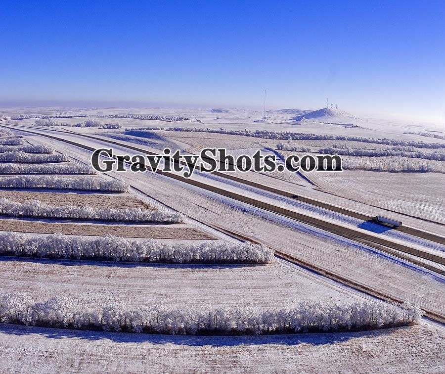 Frozen Prairie I-94 Winter Aerial