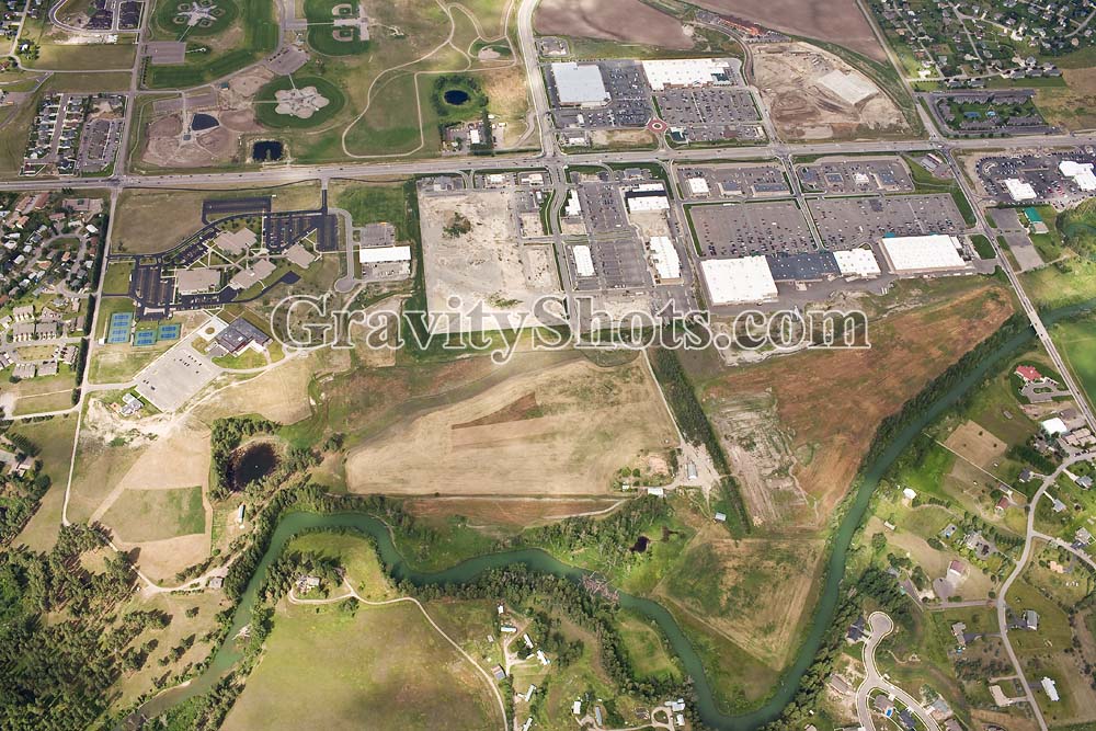 Cessna 172 perspective of college and commerce Kalispell, MT Summer Aerial