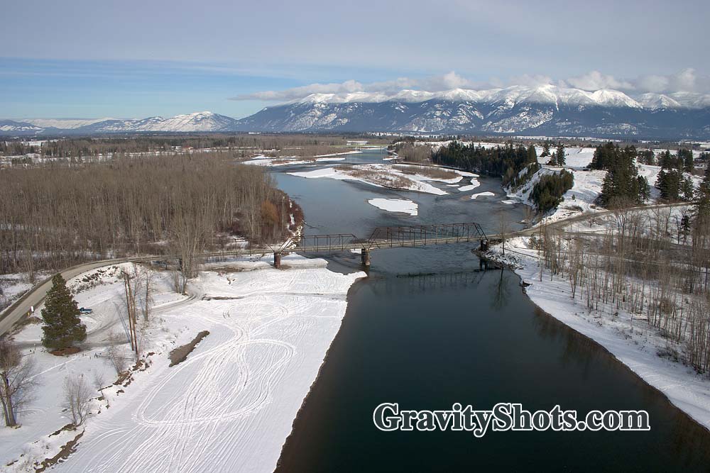 Old Steel Bridge Kalispell, MT Winter Aerial