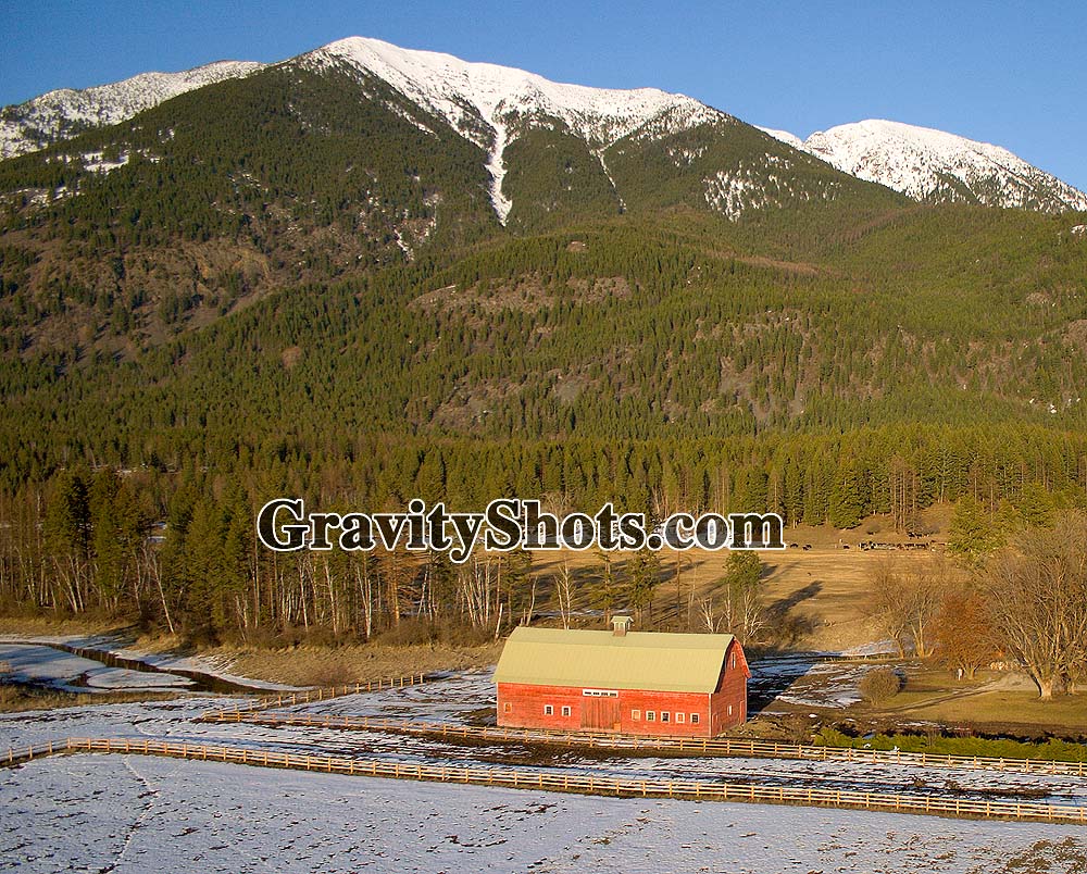 Columbia Falls bridge looking towards Bad Rock canyon Columbia Falls Winter Aerial