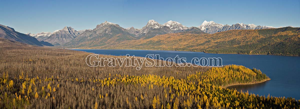 Train coming around the corner. Whitefish Lake, MT Fall Aerial