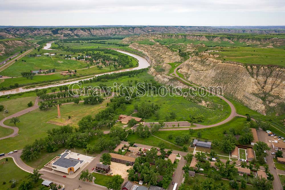 Entrance to Theodore Roosevelt National Park Medora, ND Summer Aerial
