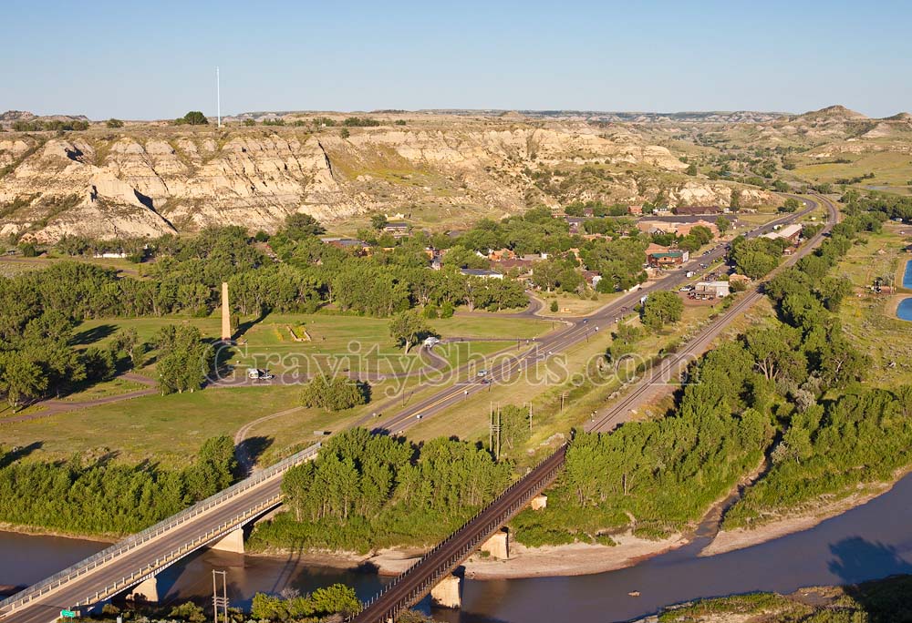Medora, ND outside of Theadore Roosevelt Natl Park with the Little Missouri in foreground