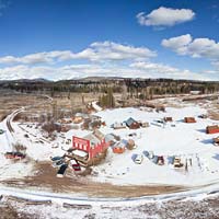 Panoramic over Polebridge, MT with the Mercantiles new solar panels