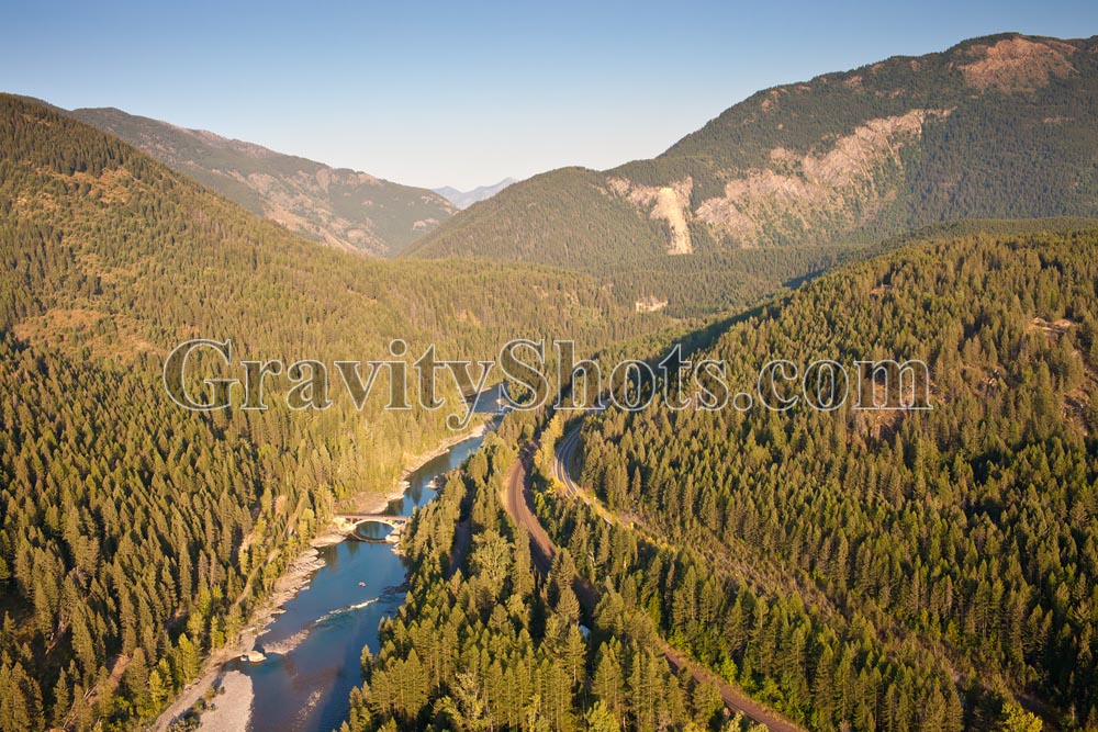Old entrance to Glacier National Park, Belton Bridge West Glacier, MT Summer Aerial