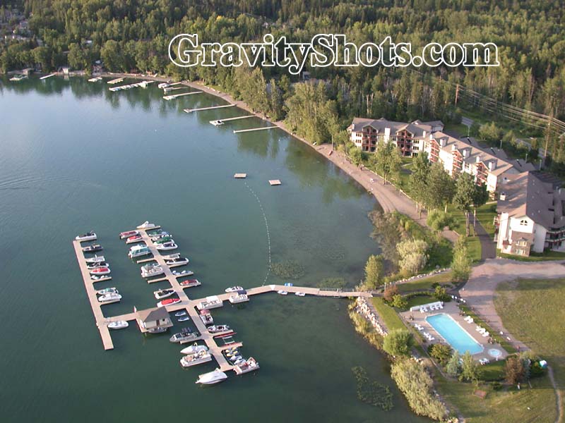 Whitefish Lake Lodge and marina Whitefish Lake, MT Summer Aerial