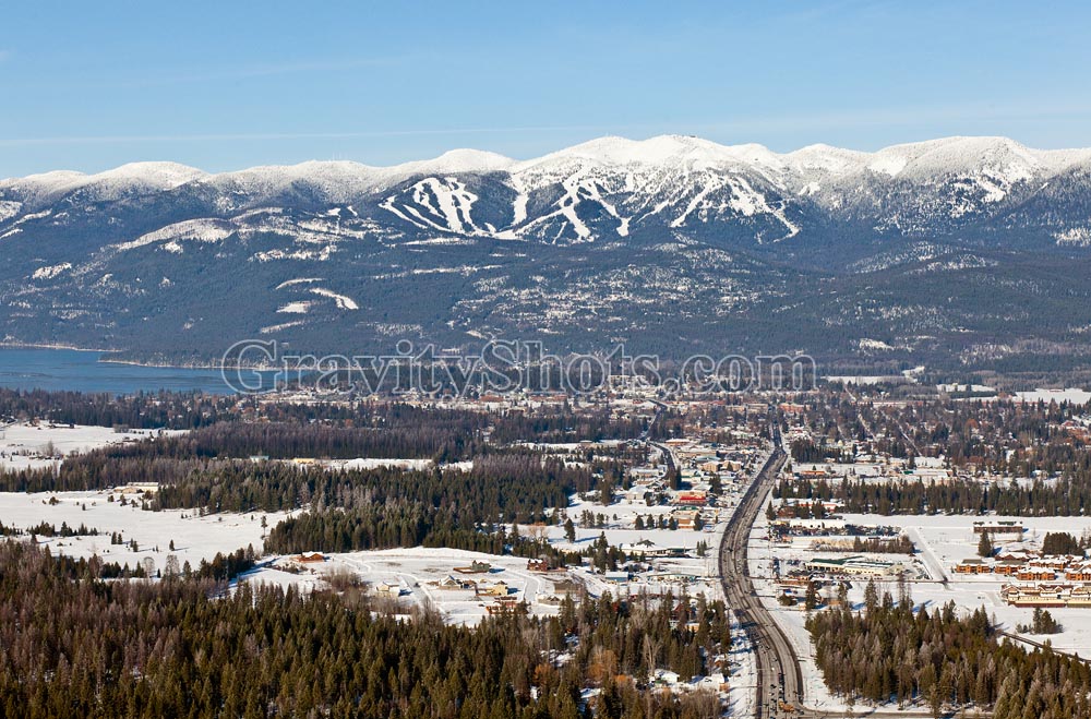 Whitefish Mountain Resort Whitefish Lake, MT Winter Aerial
