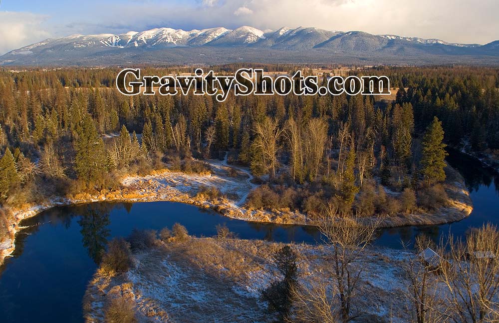 New Bridge Reflections Whitefish, MT Fall Aerial