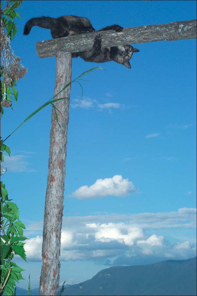 Old Man on garden entrance Whitefish, MT Summer Kitties